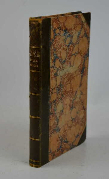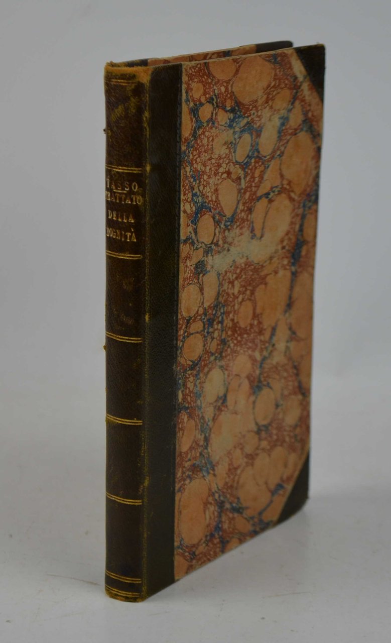 Cm. 20,5, pp. 202 (2). Con un fac-simile d'autografo ripiegato fuori testo. Solida legatura del tempo in mezza pelle con punte, dorso liscio con titoli e filetti in oro. Esemplare ben conservato e stampato su carta di ottima qualità. Dedica ms. dell'autore parz. visibile alla parte bassa del frontespizio. Trattato tassiano rimasto inedito per quasi due secoli e pubblicato per la prima volta in quest'edizione. Seguono alcune lettere, anch'esse inedite. Cfr. Gamba, 980. Brunet, V, 675. Graesse, VII, 39.