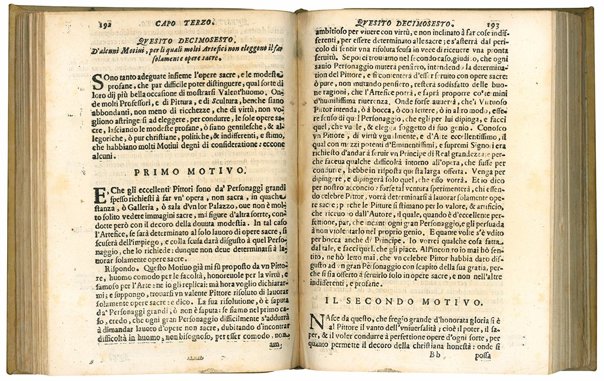 Melzi, II, pp. 264-265; Italian Union Catalogue, IT\ICCU\RMRE\002076; Cicognara, no. 222, De Backer-Sommervogel, VI, col. 12; Schlosser Magnino, 1967, pp. 616-618; G.D. Ottonelli, Trattato della pittura e scultura, uso et abuso loro, 1652, V. Casale, ed., Treviso, 1973.