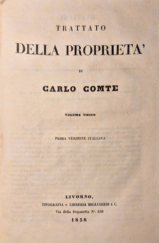 TRATTATO DELLA PROPRIETÀ di Carlo Comte 1838 Migliaresi Livorno Libro Antico