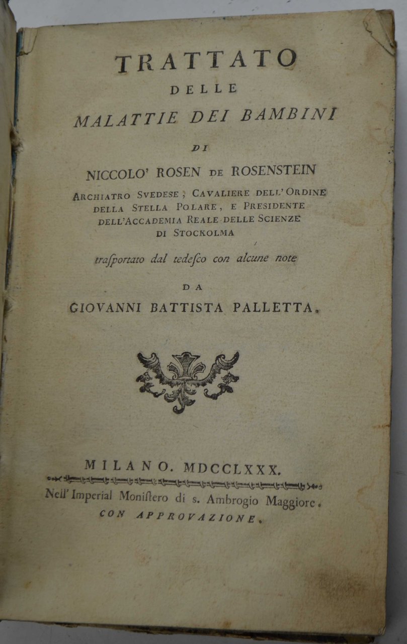 Trattato delle malattie dei bambini… trasportato dal tedesco con alcune note da Giovanni Battista Palletta.