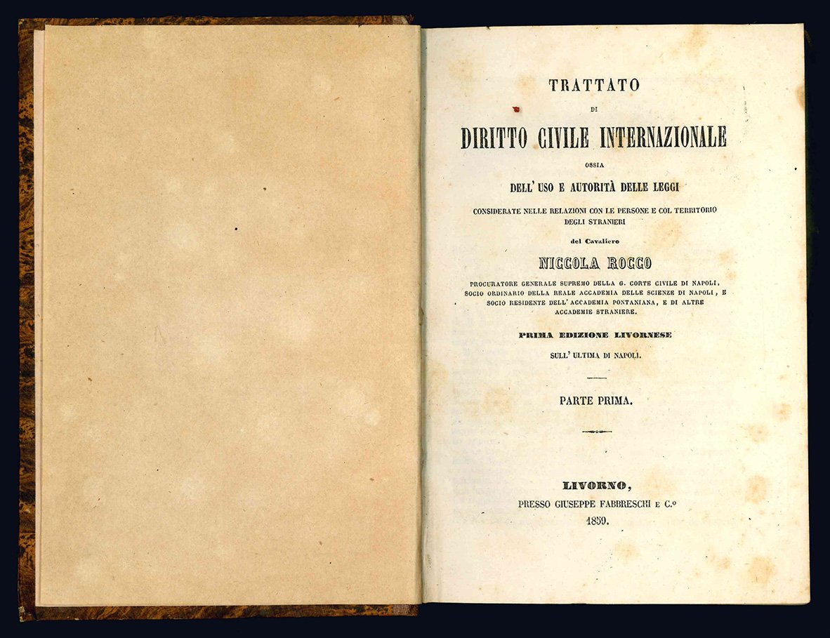 Trattato di diritto civile internazionale ossia dell'uso e autorità delle leggi considerate nelle relazioni con le persone e col territorio degli stranieri del Cavaliere Niccola Rocco. Parte prima [-terza].