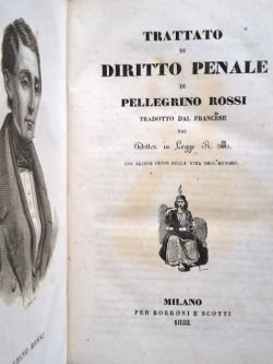 In-8° (cm. 21,8), legatura coeva in m. pelle con titolo e dorature al dorso, tagli spruzzati; pp. [2] 478 in buono stato, con ritratto dell'autore; fioriture sparse. Edizione italiana (pubblicata nella raccolta Biblioteca scelta del foro criminale italiano diretta da Giuseppe Toccagni) contemporanea alla prima napoletana curata e tradotta da Antonio Fazzini. Buon esemplare. (NJ3)