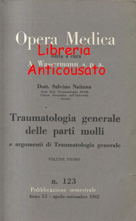 TRAUMATOLOGIA GENERALE DELLE PARTI MOLLI di Salvatore Naitana Opera Medica Wassermann editore,