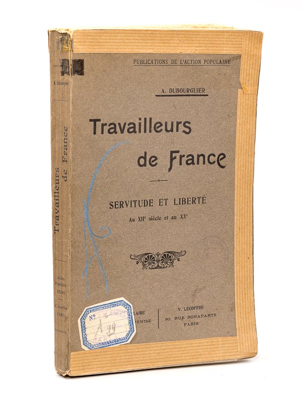 1 vol. in-8 br., Action Populaire, Reims - V. Lecoffre, Paris, s.d. (circa 1908), XII-235 pp. Etat satisfaisant (anciens cachets, étiq. et cotes ms. d'instit. relig., couv. renforcée au papier kraft sur bords, bon état par ailleurs, avec intérieur bien frais). Une publication de l'Action populaire, revue créée en 1903 par le jésuite Henri-Joseph Leroy.