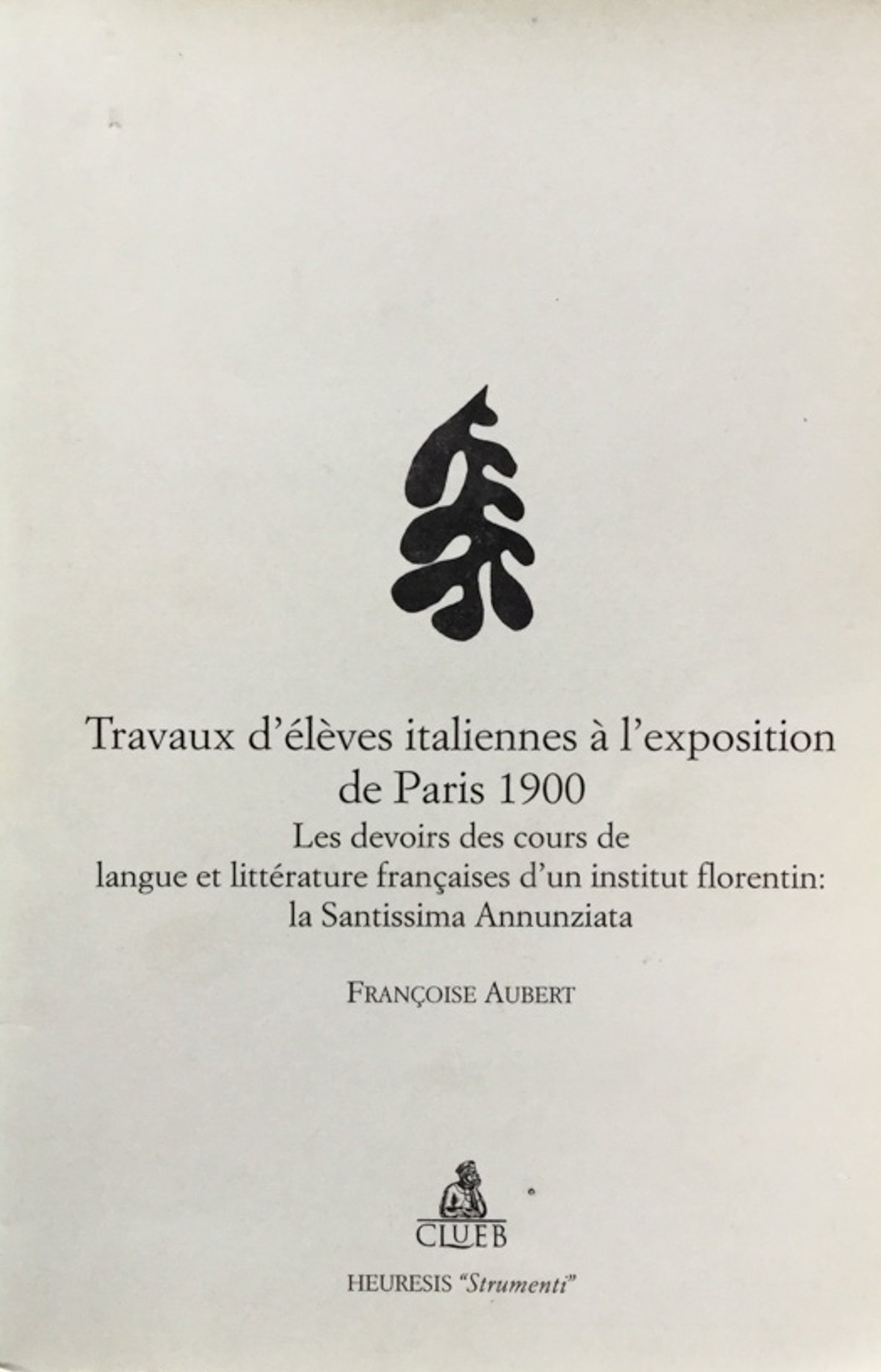 Francoise Aubert, Travaux D'eleves Italiennes a L'exposition De Paris 1900: Les Devoirs Des Cours De Langue Et Litterature Francaises D'un Institut Florentin La Santissima Annunziata. Bologna, Clueb, 1999. Brossura- 252 pp., 21 cm. Collana: Heuresis - strumenti. Condizioni eccellenti 12 Ottimo (Fine) Ottimo