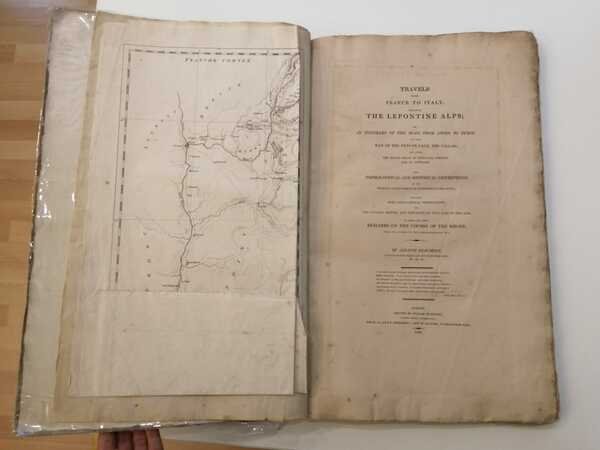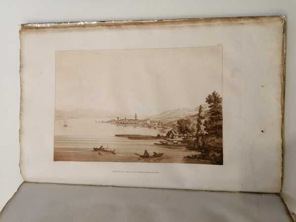 [VI], 119, [1] p., XXVII c. di tav. (delle quali la prima è una c. geogr. più volte rip.), 47 cm, cart. Condizioni : USATO - Stato : Buono, ordinari segni d'uso e del tempo, rinforzo al dorso e alle punte dei piatti con conservazione del tassello coi titoli oro al dorso, dell'etichetta originale a stampa coi titoli applicata al piatto, ex libris nobiliare al contropiatto anteriore. Altre note : Con carta topogr. ripiegata colorata a mano, pianta di Lione e 25 vedute a piena pag. impresse in bistro, il tutto inc. in rame all'acquatinta da Jean Francois Albanis de Beaumont. Stupende vedute di città e di paesaggi alpini (Lione, Ginevra, Cluse, Lusanne, Vevey, Sion, S. Gottardo, Martigny, S. Bernardo, etc.). L'autore, ottimo artista di origini savoiarde (Chambery 1753-1811), fu ufficiale di Carlo Emanuele IV, e pubblicò oltre alla presente, altre tre opere analoghe, sulle alpi Retiche, Cozie, Graie e Marittime. Esemplare a larghi margini in barbe. Perret 0333: Bel album, très rare et très recherché pour la qualite des illustrations. "<br>
