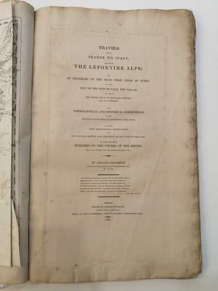 Travels from France to Italy, through the Lepontine Alps; or, An itinerary of the road from Lyons to Turin, by the way of the Pays-de-Vaud, the Vallais, and across the Monts Great St. Bernard, Simplon, and St. Gothard.