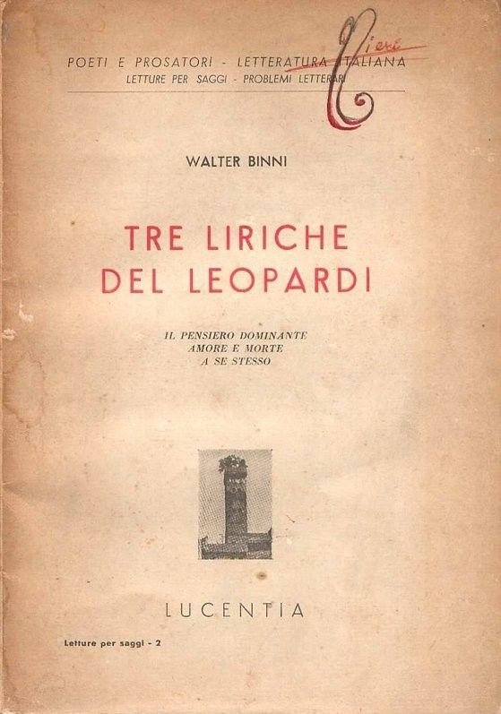 In-8°, legatura in brossura editoriale, pp. 55(2). Varie tracce d'uso, Firma autografa di Walter Binni alla 'Proprietà Letteraria'.