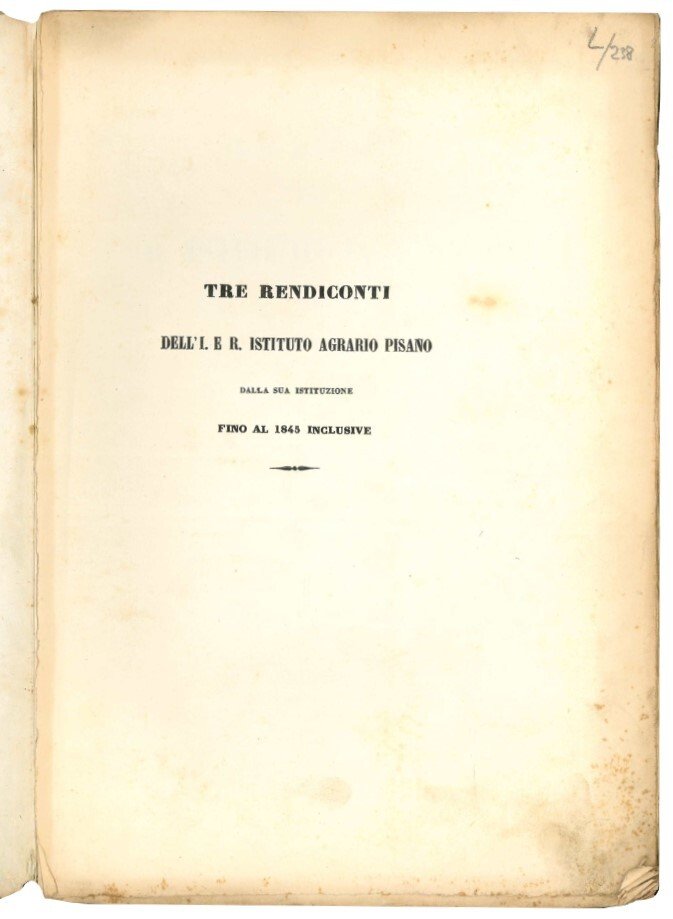Tre rendiconti dell'I. e R. istituto agrario pisano dalla sua istituzione fino al 1845 inclusive.
