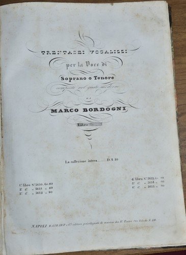 TRENTASEI VOCALIZZI PER LA VOCE SOPRANO O TENORE di Marco Bordogni libro antico