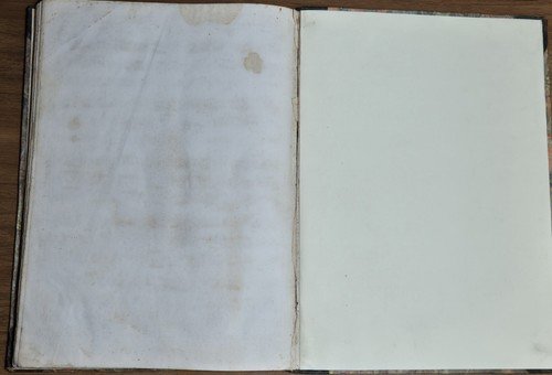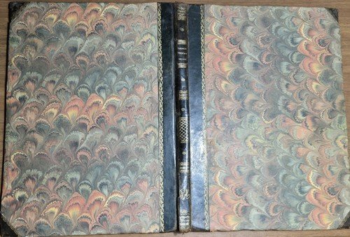 141 pagine. Copertina non editoriale in mezza pelle con piatti in carta fiorentina, titoli e fregi dorati al dorso. I risguardi non sono originali (come probabilmente la carta fiorentina dei piatti). Dimensioni: 26 x 36,5 cm. Stato di conservazione: buono (piccolissima mancanza al piede del dorso e agli angoli, fioriture).