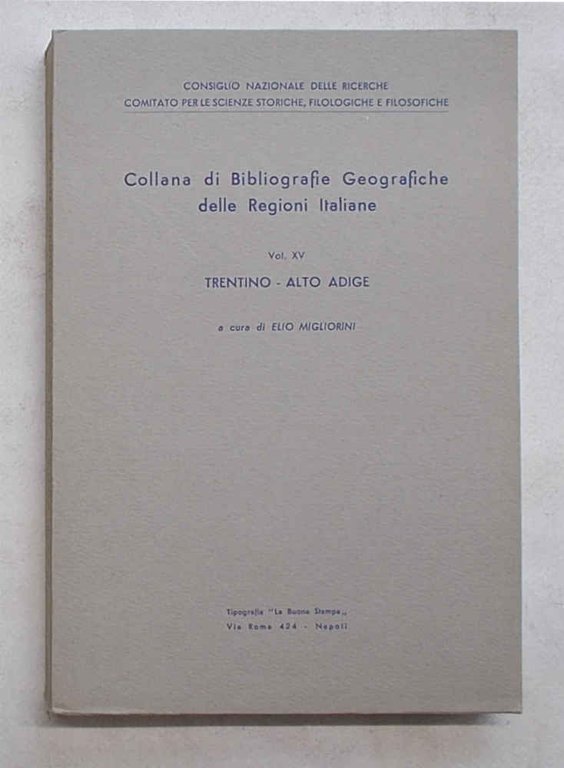 Trentino - Alto Adige. Collana di Bibliografie Geografiche delle Regioni Italiane. Vol. XV.