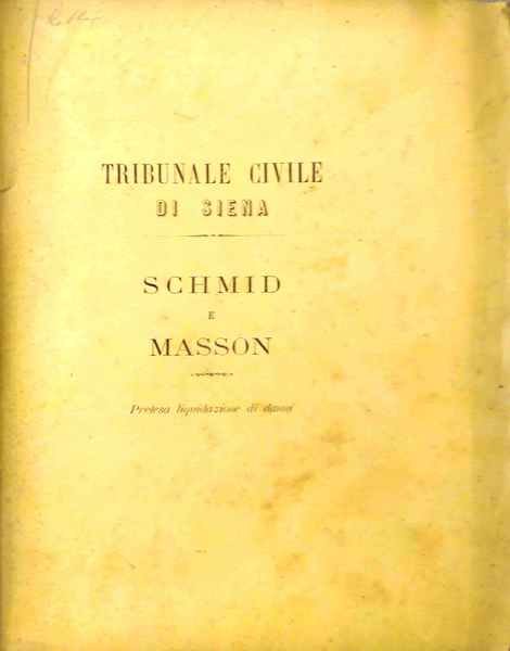 Tribunale Civile di Siena. Schmid e Masson. Pretesa liquidazione di danni.