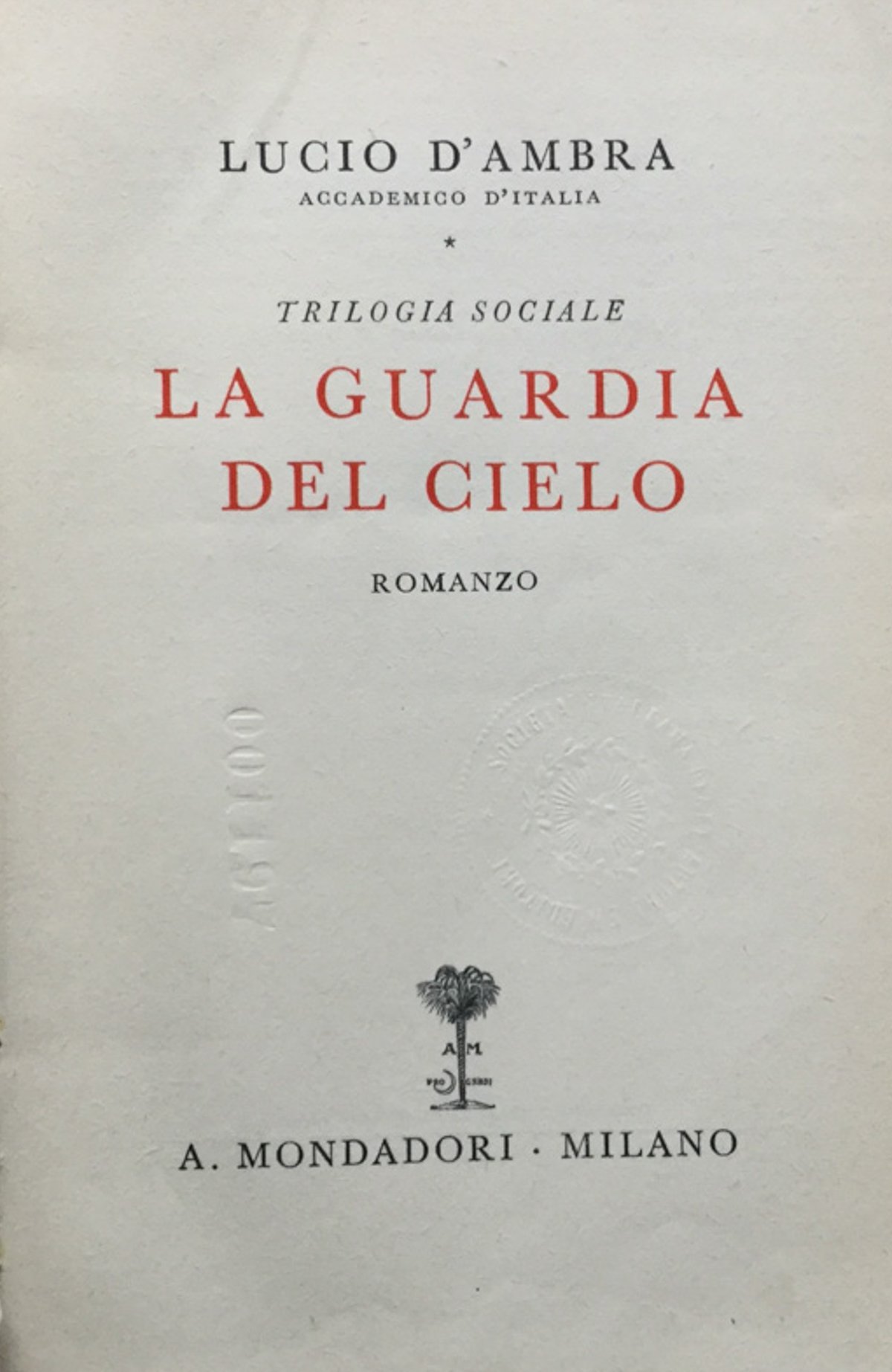 Cm 19. leg. tl., tit. dor. al d., pp.375-(5). Firma a matita blu su f. bianco ma bell'esempl. [Ediz. orig.]. 1939. 16 Buono (Good) Buono