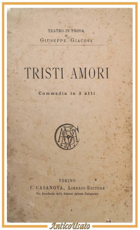 TRISTI AMORI commedia di Giuseppe Giacosa 1890 Casanova libro antico teatro