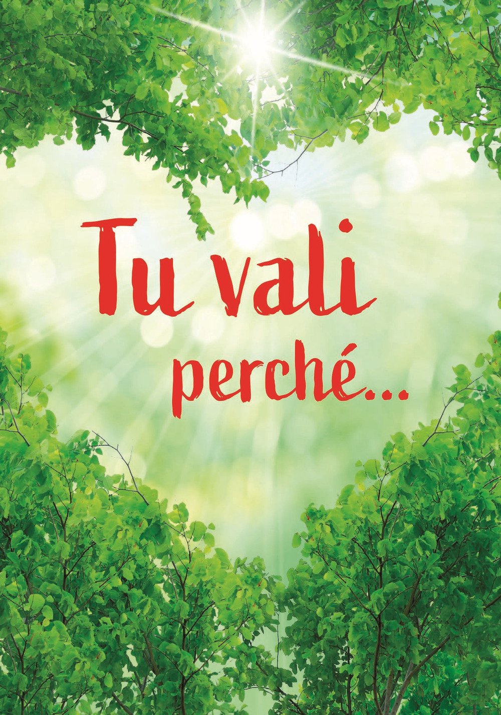 Parole e immagini per far sentire importanti le persone amate. Tu vali per l'amore alla vita: sai di non esistere per caso, ma per portare a compimento la tua missione unica là dove questa ti chiama a vivere e operare. Vali anche per le lacrime delle scelte sbagliate e gli errori compiuti. Vali per la forza di ricominciare senza trascinarti dietro fardelli ingombranti.