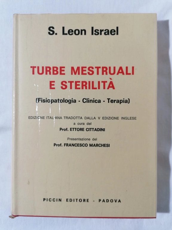 TURBE MESTURALI E STERILITà Fisiopatologia, clinica, terapia di S. Leon Israel Edizione italiana tradotta dalla V edizione inglese a cura del prof. Ettore Cittadini Presentazione del prof. Francesco Marchesi Piccin editore, 1970, Padova Buone condizioni generali 2C-12-12