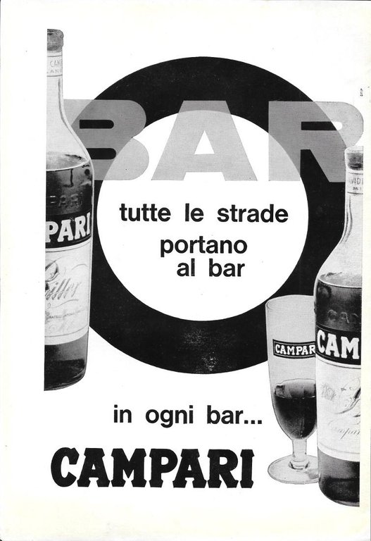 Tutte le strade portano al bar, in ogni bar... Campari. Advertising 1963