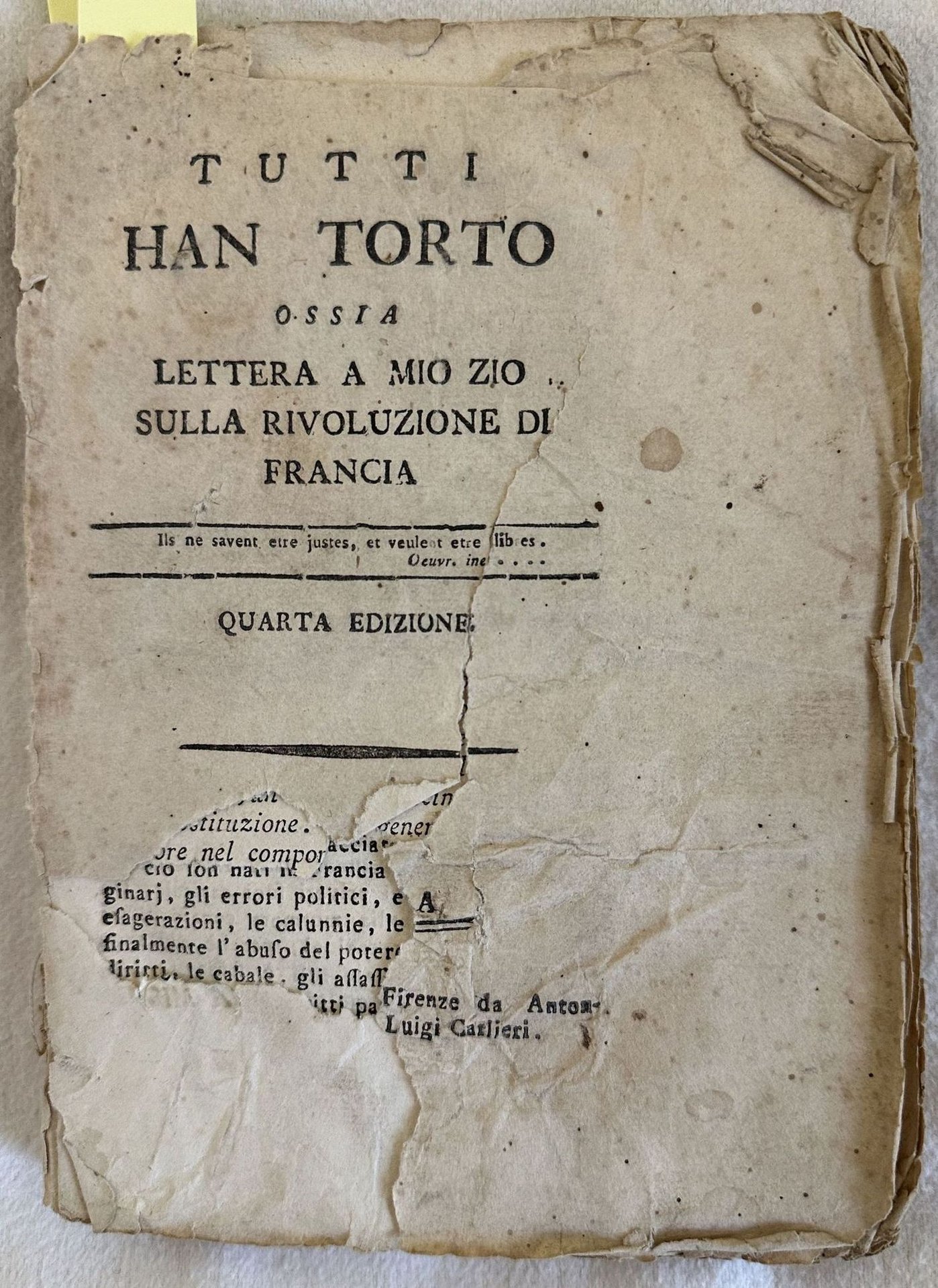 TUTTI HAN TORTO OSSIA LETTERA A MIO ZIO SULLA RIVOLUZIONE DI FRANCIA