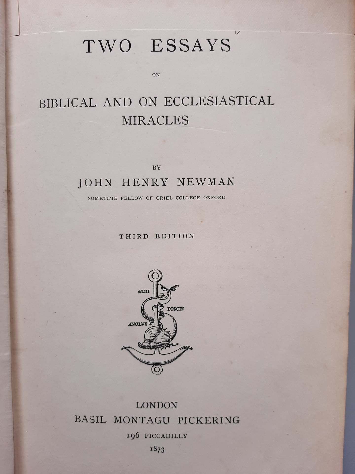 Two essays on biblical and on ecclesiastical miracles.
