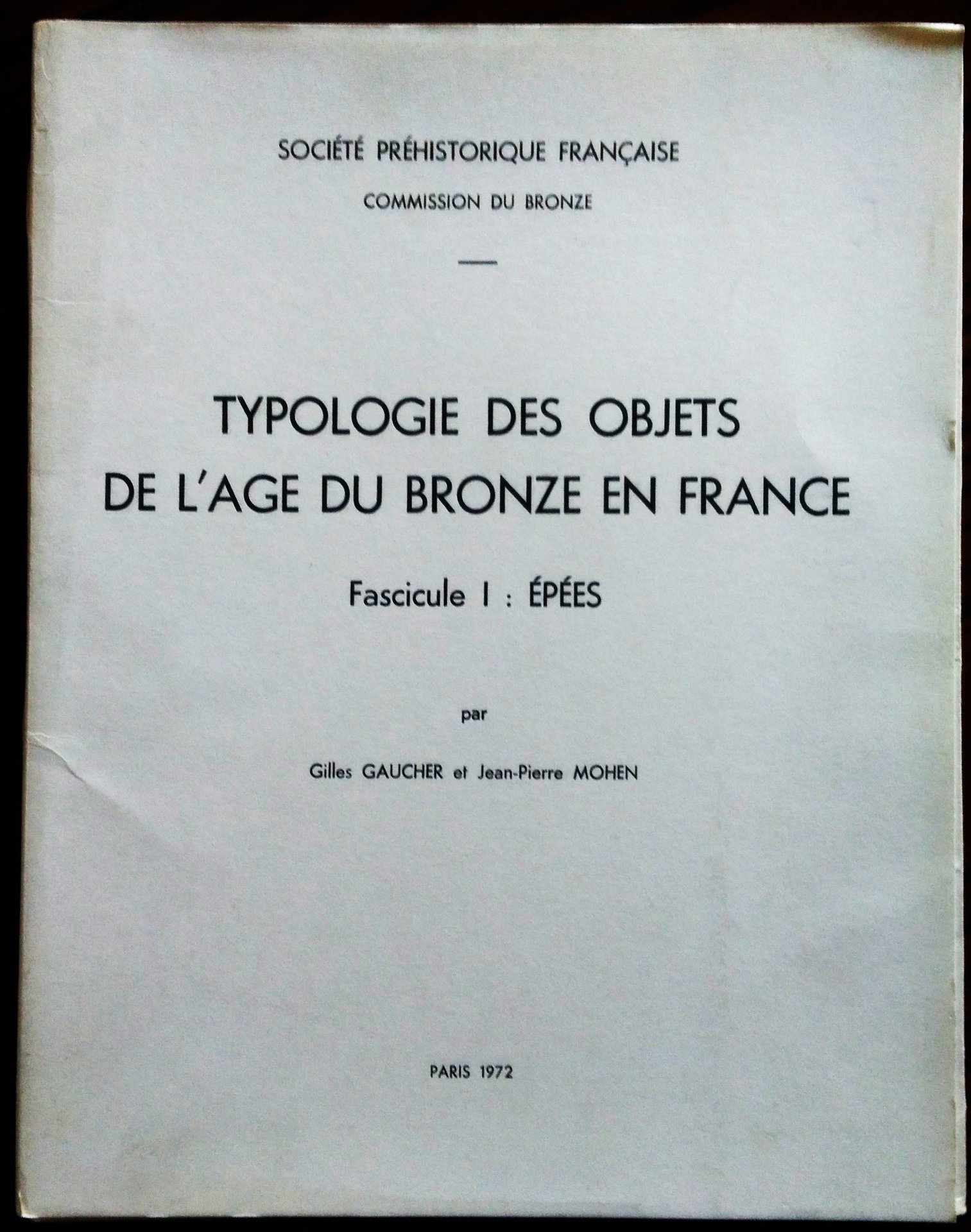Typologie des objets de l'âge du bronze en France. Fascicule 1 : Epées.