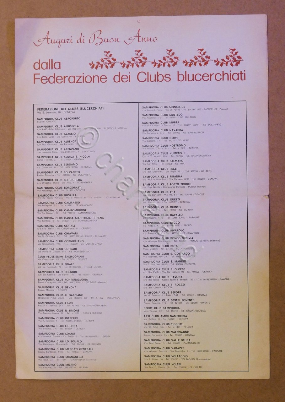 U.C. Sampdoria - Calendario 1980 - Campionato Calcio - Elenco Club Blucerchiati