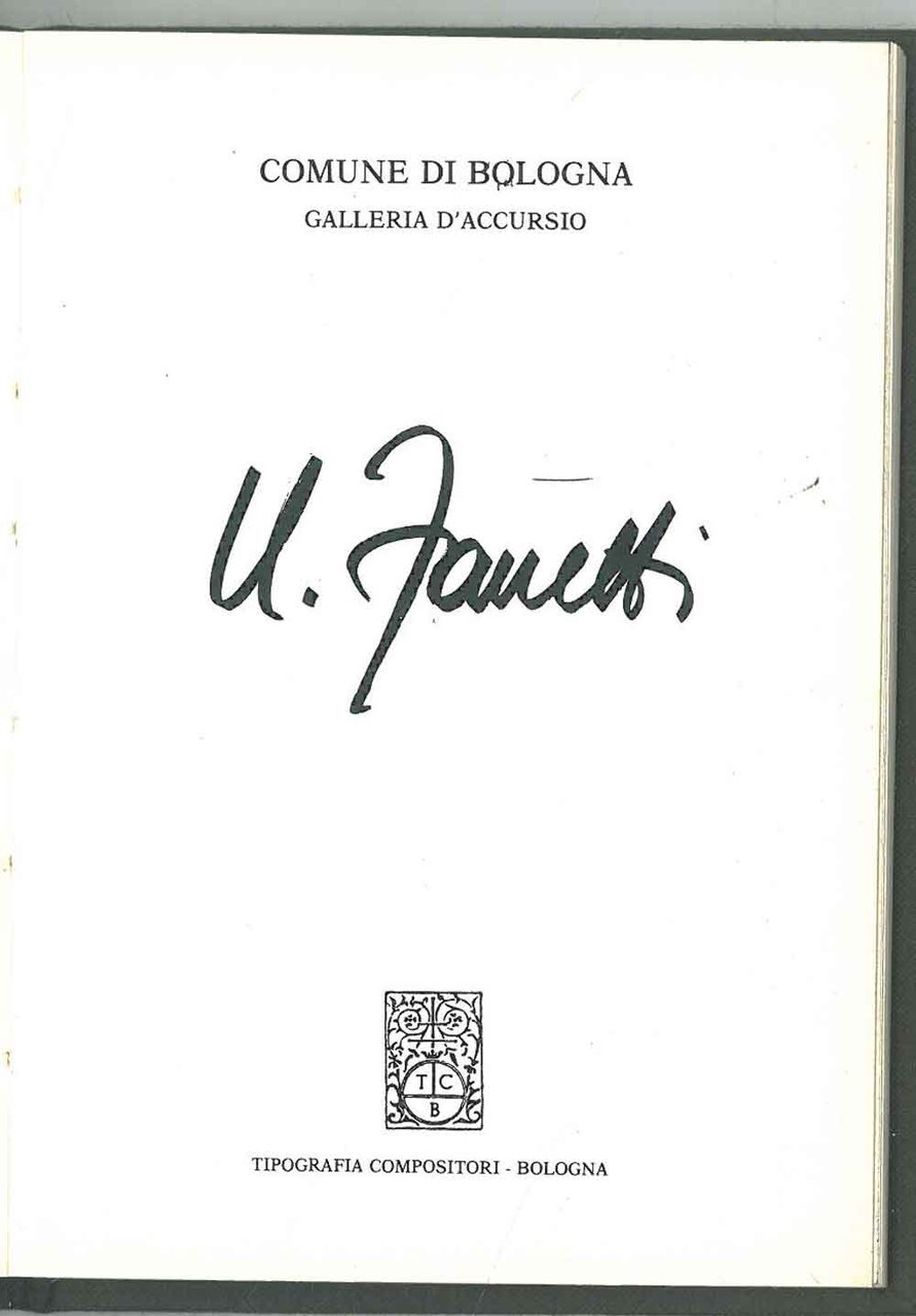 16 cm, ril. in tela, tit. in oro al piatto e dorso; pp. 49, 8 tav. a col. nel testo, 42 tav. a col e in nero fuori testo,notizie bibliografiche e mostre, testo in italiano, inglese, francese e tedesco, dedica autografa dell'autore alla prima carta bianca, biglietto da visita ill