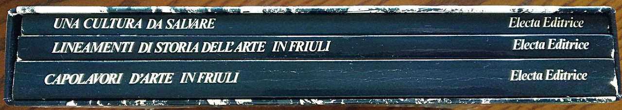 Milano, Electa, 1976. 4°, tre volumi, molte illustrazioni, legature editoriali, cofanetto. 1)- Capolavori d'Arte in Friuli, pp. 139. 2)- Una cultura da salvare, pp. 56. 3)- Lineamenti di storia dell'arte in Friuli, pp. 65. Belle copie. Catalogo della mostra di Passariano, Villa Manin, 5 settembre 31 dicembre 1976.
