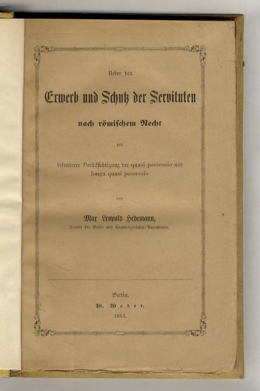 Ueber den Erwerb und Schutz der Servituten nach römischen Recht. Mit besonderer Berücksichtigung der 'quasi possessio' und 'longa quasi possessio'.
