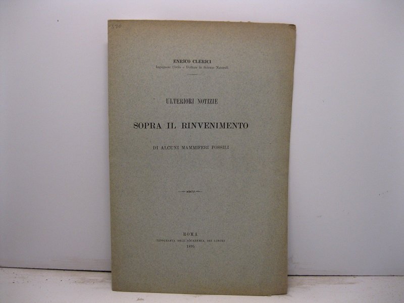 In 8, pp. 11. Br. ed. Alcune aggiunte relative al ritovamento di resti fossili animali nei dintorni di Roma appartenenti al Castor fiber e dell'Elephas meridionalis.