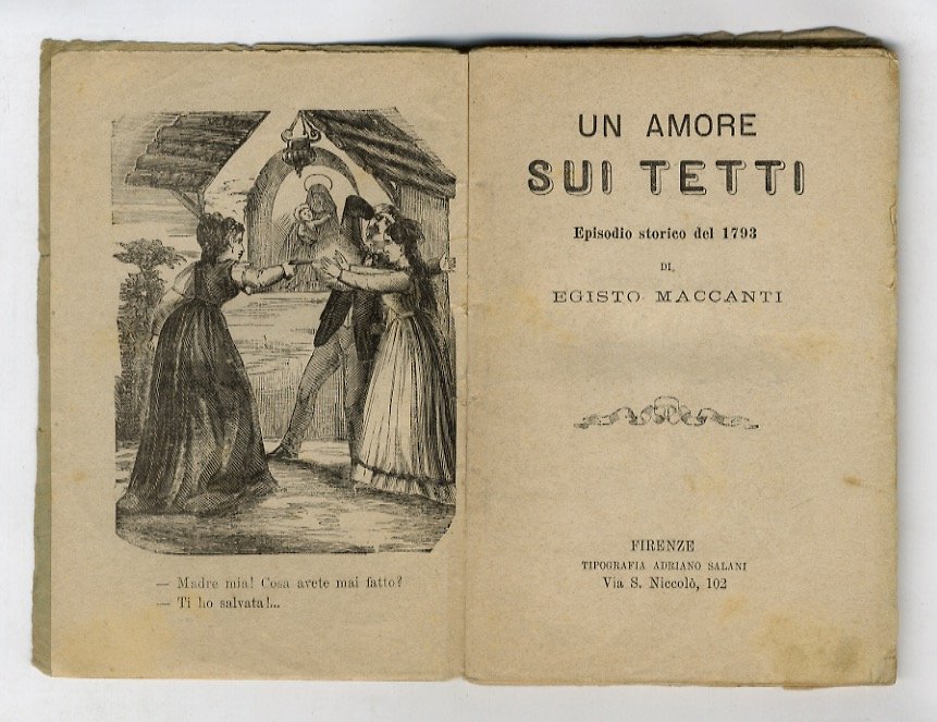 Firenze, Tip. A. Salani (Via S. Niccolò 102), senza data (fine sec. XIX), in-16, brossura editoriale illustrata, pp. 126, (2). Antiporta figurata. Mancanza marginale alla penultima pagina.