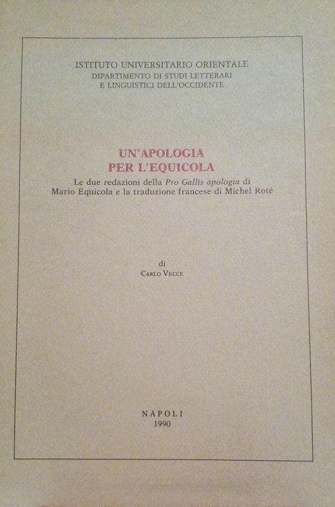 UN'APOLOGIA PER L'EQUICOLA - LE DUE REDAZIONI DELLA "PRO GALLIS APOLOGIA" DI MARIO EQUICOLA E LA TRADUZIONE FRANCESE DI MICHEL ROTE