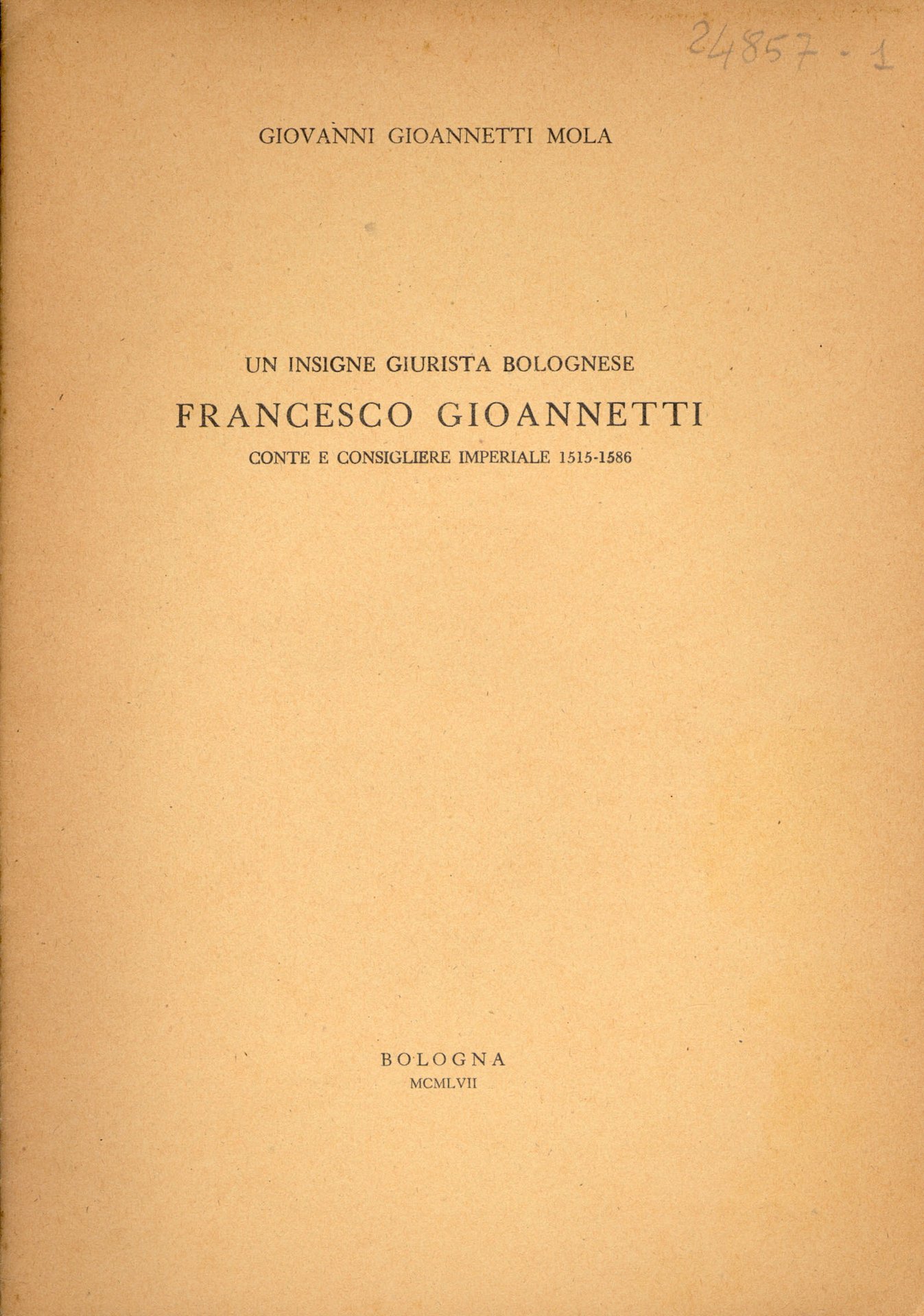 Un insigne giurista bolognese. Francesco Gioannetti conte e consigliere imperiale 1515-1586