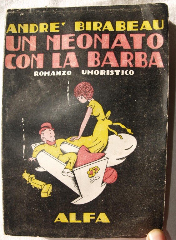 In 8. Dim. 19,5x14 cm. Pp. 237. Interessante opera umoristica completa in un volume scritta da Andre Birabeau. Senza data ma degli anni 1930 circa. All'ultima pagina appunto manoscritto su un viaggio in treno datato 1932. Brossura editoriale in buone condizioni generali con lievi usure ai margini, dorso e piatti. Legatura in ottime condizioni. All'interno le pagine si presentano in discrete condizioni con rare fioriture e lievi gore d'umidità al piatto posteriore. Pagine leggermente ondulate. complete work in one volume written by Andre Birabeau. It is not dated but of about 1930's. In the last page a manuscripted note about a voyage in train dated 1932. Editorial cover in good general conditions slightly worn in the edges, spine and plates. Binding in very good conditions. Inside pages are in fair conditions with occasional foxings and slight humidity stains in the back plate. Pages are slightly undulated.