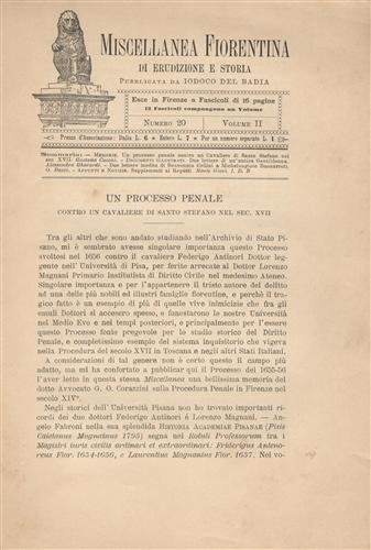 Un processo penale contro un cavaliere di Santo Stefano nel sec.XVII. (Federico Antinori).