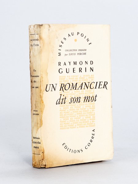 Un des 40 exemplaires sur papier Crèvecoeur du Marais numéroté (n°9), 1 vol. in-12 br., coll. "Mises au Point", Editions Corrêa, Paris, 1948, 209 pp. Bel envoi du romancier bordelais Raymond Guérin (1905-1955), futur auteur des "Poulpes" : "Pour vous, cher Jean Grenier, en vous remerciant de la lettre si belle et si compréhensive que vous lui avez écrite à propos du Diogène [ souligné], votre ami fidèle R. Guérin 29.5.48" Avec Albert Camus et Jean Paulhan, Jean Grenier fut l'un des tous premiers soutiens de Raymond Guérin. Exemplaire modeste (fortes mouill., colorées en fin d'ouvrage) mais vrai relique témoignant du soutien de l'écrivain et philosophe Jean Grenier (1898-1971) à l'auteur, lors de la publication en 1947 de son autoportrait littéraire sous le titre de "Confession de Diogène". Prix en l'état
