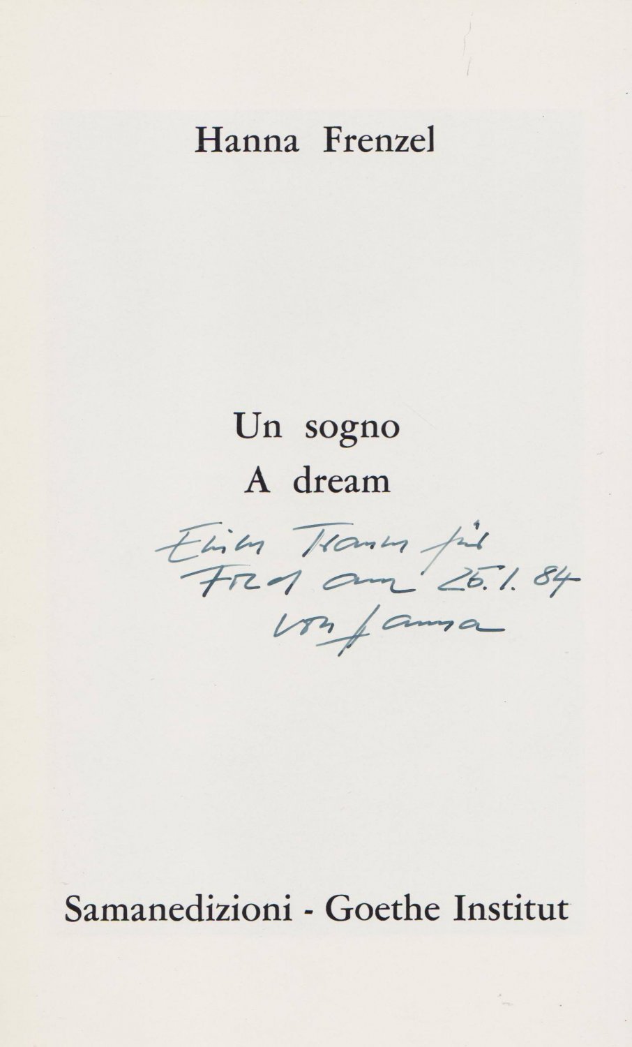 Un sogno. A dream. (With dedication and signature of the artist!).