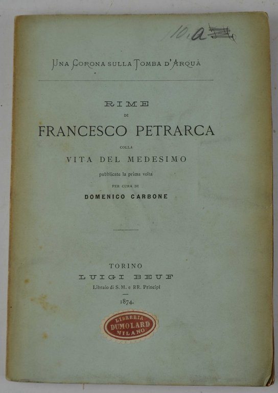Una corona sulla tomba d'Arquà. Rime di Francesco Petrarca colla vita del medesimo pubblicate la prima volta…