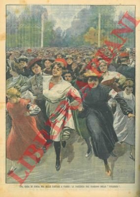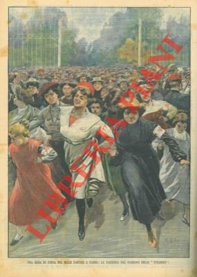 Una gara di corsa fra mille sartine a Parigi: la partenza dal giardino delle "Tuileries".