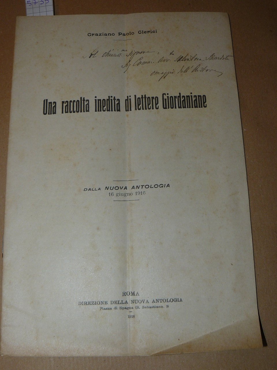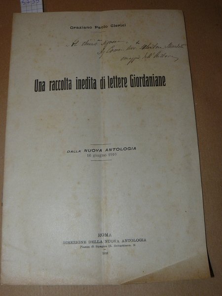 Una raccolta inedita di lettere Giordaniane. Dalla Nuova Antologia 16 giugno 1916