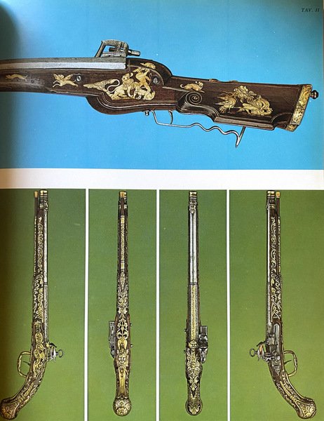 To achieve these ends, the weapons' owners chose Acquafresca Editrice S.A. of Lugano, who in turn asked Robert Held, editor of The Arms and Armor Annual (see p. 158) and author of The Age of Firearms, etc., to take on the tasks of bilingual authorship and project supervision. Now we launch the result with the hope of soon receiving word from many quarters that the structure thus far created has met the approval of the international collecting fraternity, and that it will become established as a venture advantageous for all those who will share in its many interlocking benefits.