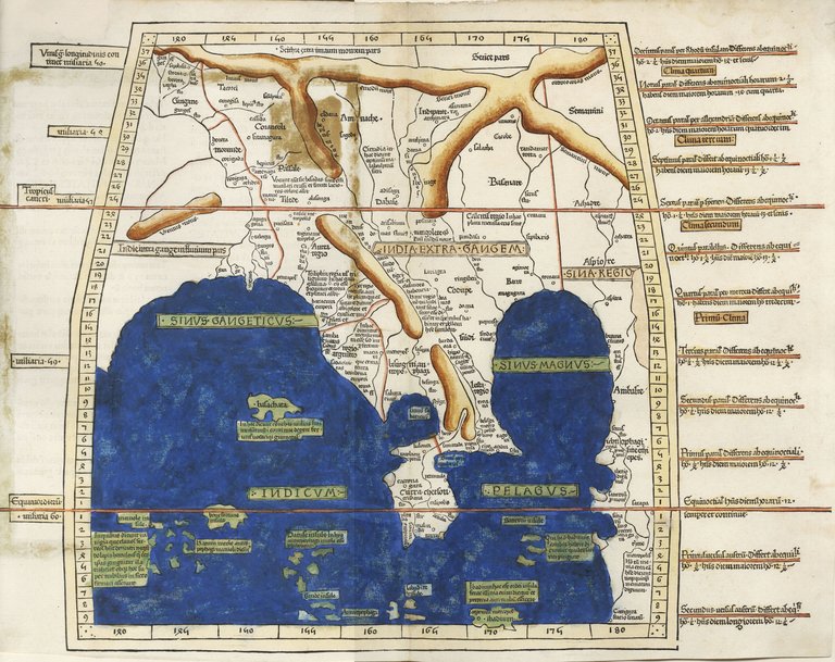 - Geografia, carte geografiche, Indocina, incunaboli, Birmania, Laos, Cambogia, Thailandia, Vietnam, Malesia, Indocine, Singapore, Tolomeo, Ptolemy, Ptolemaeus