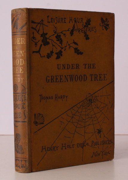 8vo., First US Edition [Later Issue]; original pictorial mustard cloth blocked and lettered in black, backstrip lettered in gilt and black, very neatly rebacked with old backstrip laid down, original printed endpapers wholly preserved, covers very lightly age-soiled (but every detail of the blocking bright and clear), corners very lightly bruised without material damage, a remarkably bright, clean copy. HARDY'S FIRST BOOK PUBLISHED IN THE US AND THE SECOND EDITION OF THE WORK OVERALL. Hardy's second novel 'Under the Greenwood Tree' was first published by Tinsley in 1872, one of the 'best press-noticed' books sold by that publisher. Under the terms of Tinsley's new agreement with Holt of New York it was then issued by the latter in their popular 'Leisure House' series in June 1873, the first of Hardy's works to be so issued in the US. His first novel 'Desperate Remedies' (1871) did not appear in the series until March 1874. From the series catalogue present on the front endpapers it is clear that this is a later issue (at least 1881 since the list includes 'A Laodician'). Most volumes in the 'Leisure Hour' series were severally reissued with updated endpapers. This copy has been expertly rebacked. The original, elaborately blocked, backstrip is virtually complete with just a few millimetres missing at extreme head and tail. The original endpapers, which carry a detailed catalogue of the 'Leisure Hour' series catalogue printed in red, are all complete and virtually unmarked. The top edge is mildly dust-soiled but this does not extend to the text, which also shows practically no trace of the usual foxing and spotting. A NOTABLE COPY AND A RARE SURVIVAL. See Purdy, p.8 et seq. NCBEL III 981.