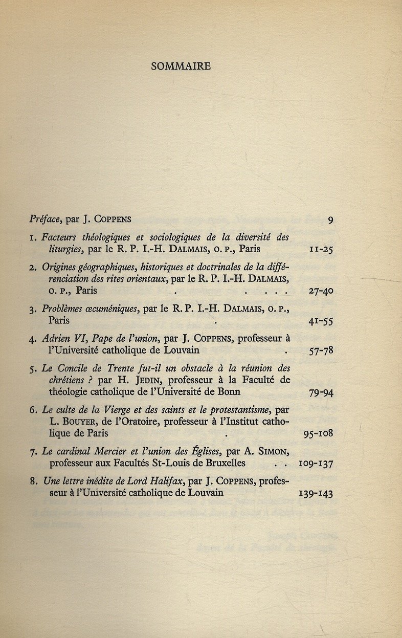 Bruges - Paris, Desclée de Brouwer, (1963), in-8, brossura editoriale, pp. 143. Con ritratto in antiporta. “Recherches Oecuméniques”, Univ. de Louvain. Ottime condizioni.