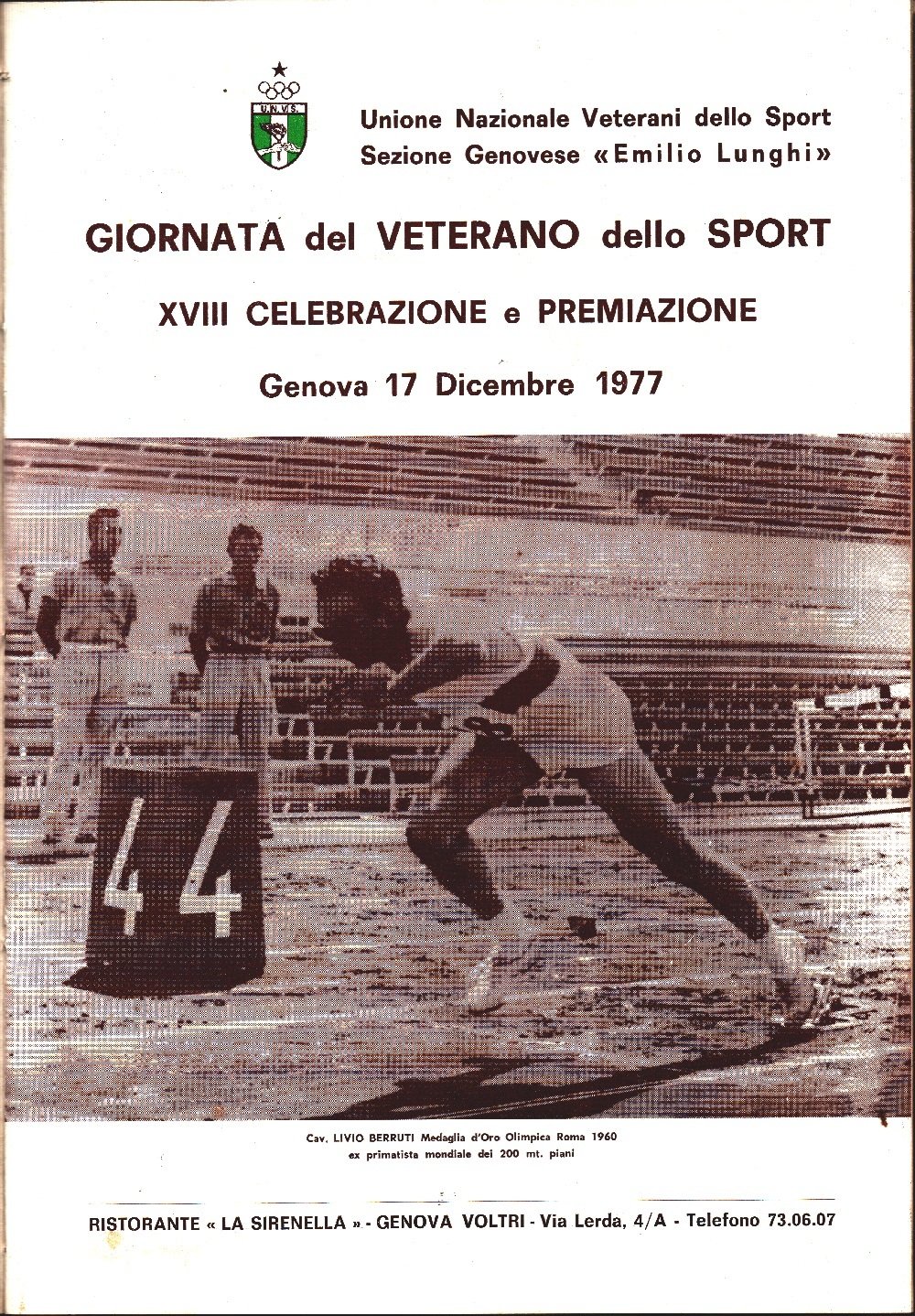 Unione Nazionale Veterani Sportivi - Genova. Manifestazioni e Celebrazioni 1977