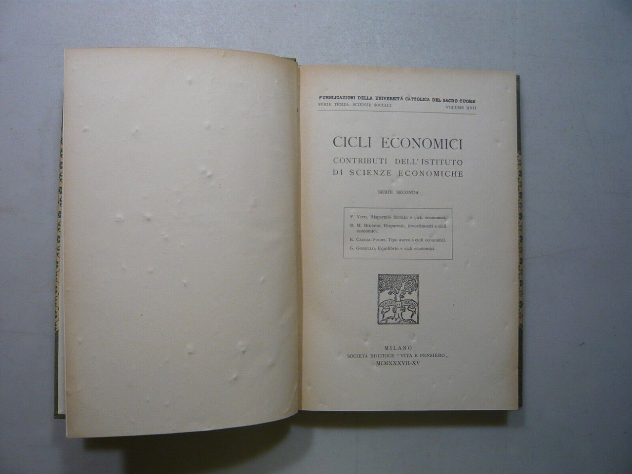 Università cattolica del Sacro Cuore,CICLI ECONOMICI,Vita e pensiero,1937