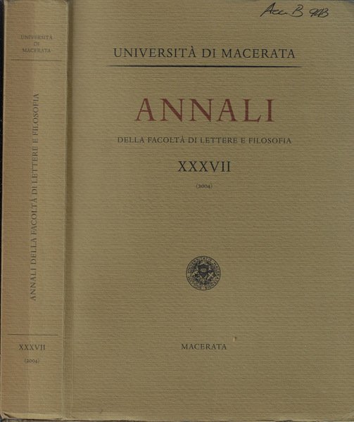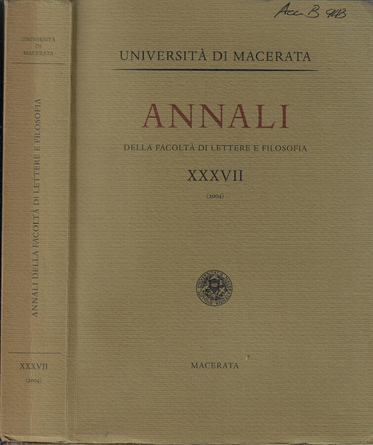 Università di Macerata annali della Facoltà di Lettere e Filosofia XXXVII 2004