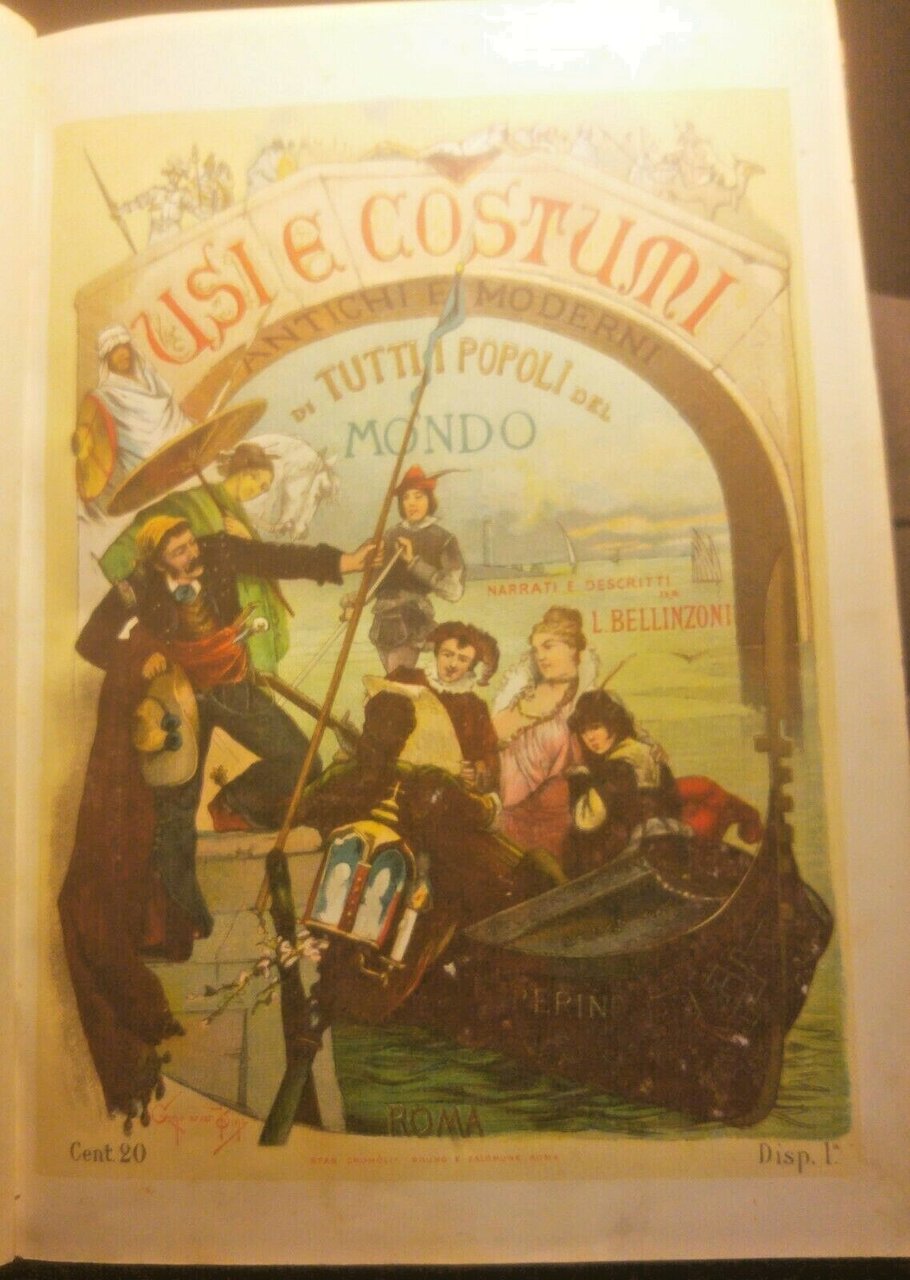 Usi e costumi di tutti i popoli del mondo narrati e descritti da L. Bellinzoni. Perino editore, Roma, presumibilmente fine del 1800.