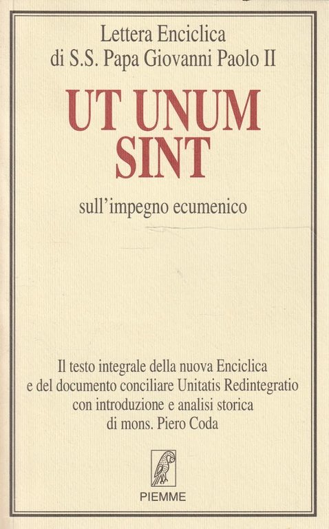 CR.39Brossura editoriale, il testo integrale della nuova Enciclica e del documento conciliare Unitatis Redintegratio con introduzione e analisi storica di mons. Piero Coda, volume come nuovo, copertina e interno in condizioni eccellenti, legatura salda128 pagine circaCopertina come da foto