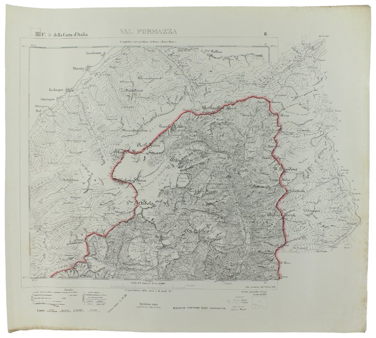 VAL FORMAZZA. Foglio 5 - II della Carta d'Italia, scala di 1:50.000, cm 58x52 ca.